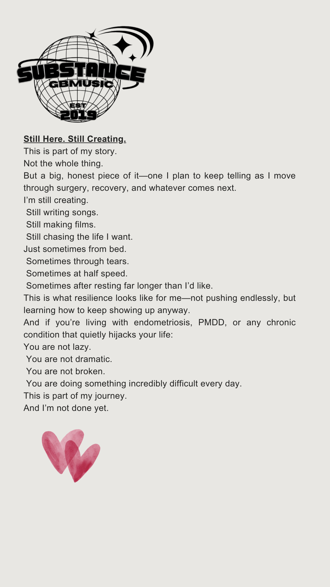 I’m completing a film, finishing an album, and keeping monthly community & humanitarian projects alive. These efforts are active, real, and ongoing — yet they’re constantly minimized by funding gaps.